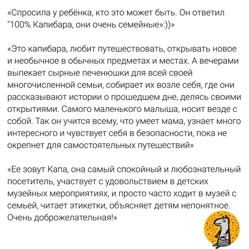 И вот такие версии о нашем герое мы получили в чате «Музейного опыта» (предлагаем полистать карточки, можно нажать на каждую из них и увеличить размер)