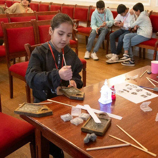 Уже в первой наскальной живописи нам встречаются следы рук, культуры Древнего Востока используют техники печатей и слепков практически повсеместно: в бытовой керамике, для украшения храмов, для сохранения информации, в качестве личной подписи... Слепки и оттиски часто используются и в реставрации музейных предметов.Используя простые резинки-клячки, участники группы сперва потренировались делать слепки с разных декоративных элементов, а затем отправились на улицу на поиски объектов, рисунков и узоров, с которых хотели бы снять отпечатки. Получилась коллекция принтов-впечатлений об окрестностях музея.В декабре, по следам разговора о печатях, мы стали знакомиться с историей письменности.